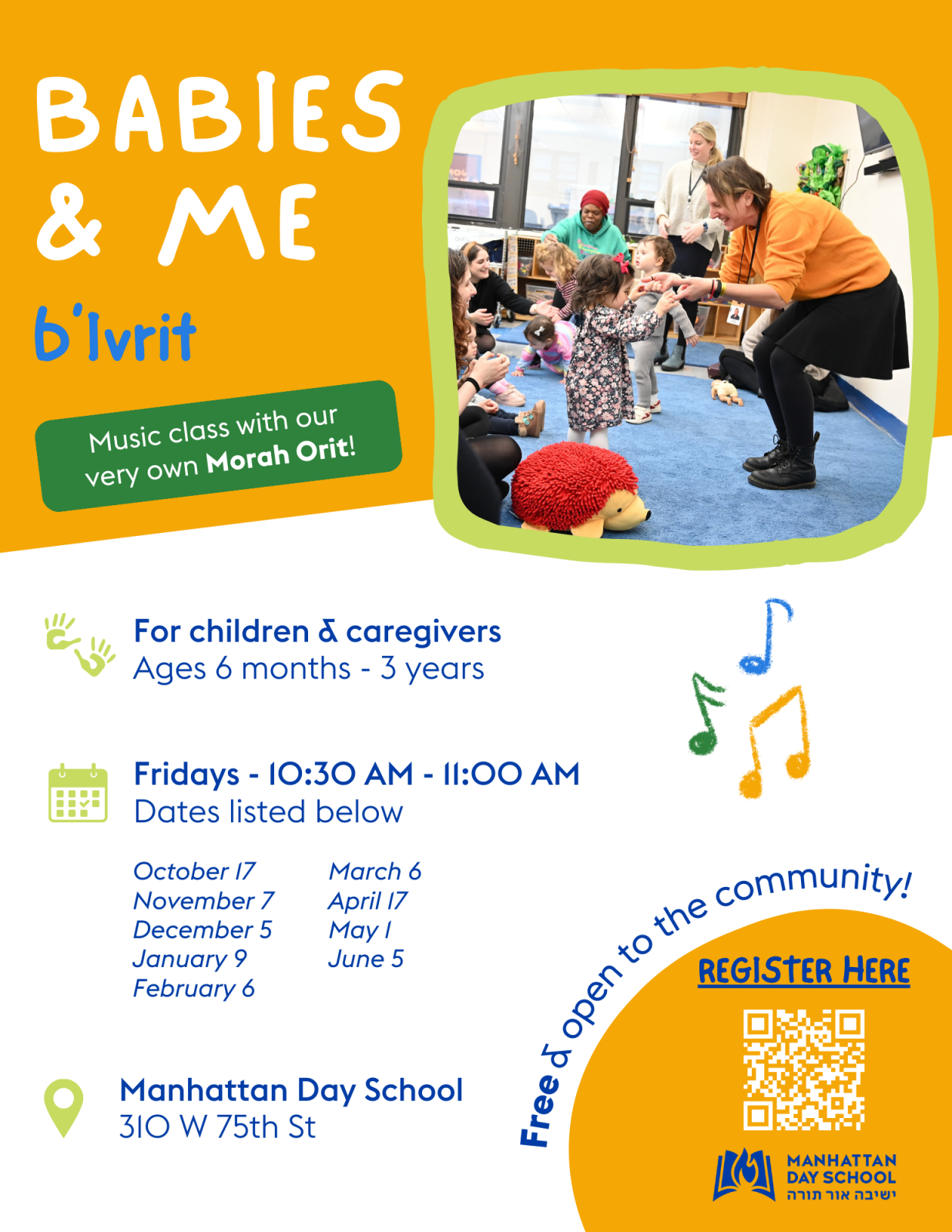 MDS Babies & Me Register for the MDS Babies & Me b'Ivrit with Morah Orit, free and open to the community.
